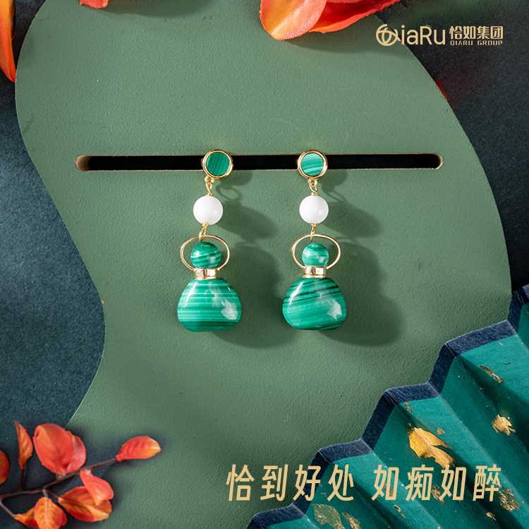 孔雀石/象牙迷你福袋耳环X1
