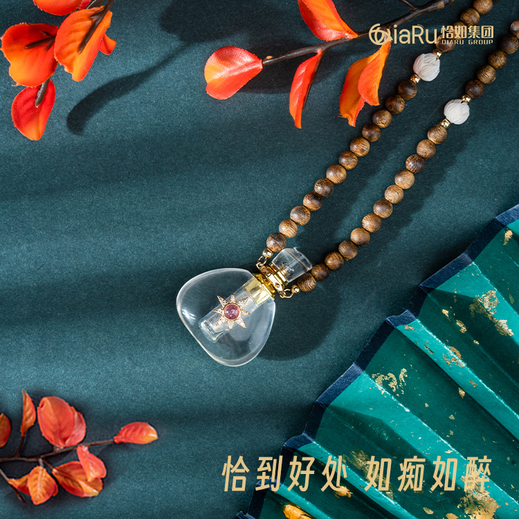 中号福袋碧玺贴片吊坠+26英寸沉香/象牙珠链X1