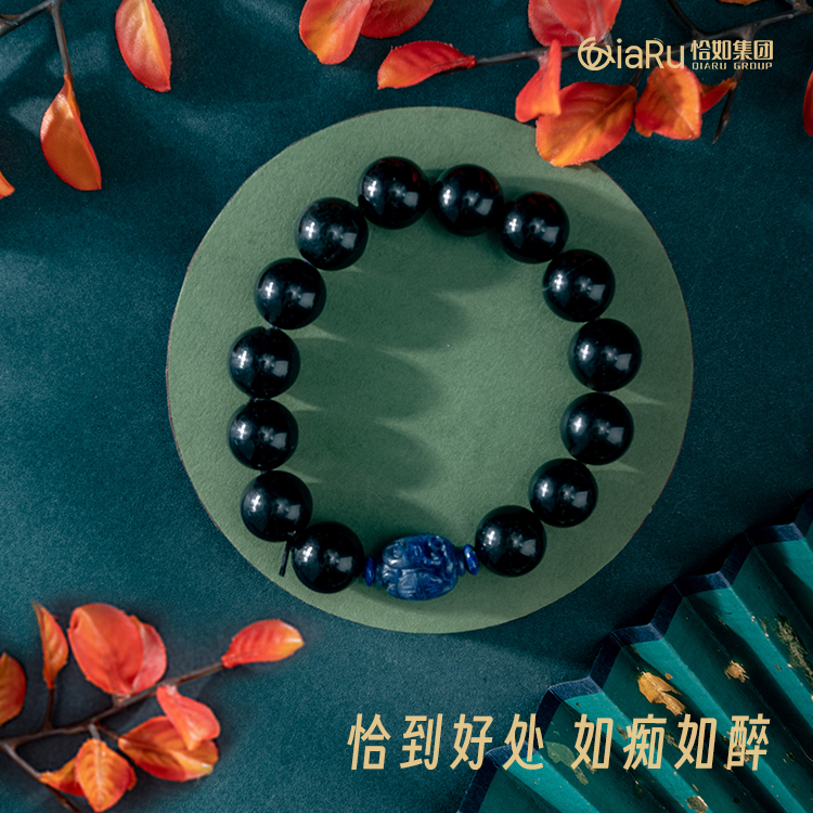 沉香珠/黑曜石圆珠手串X1