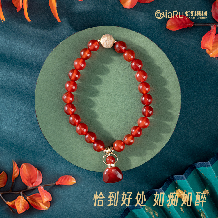 红玛瑙迷你福袋圆珠手链X1