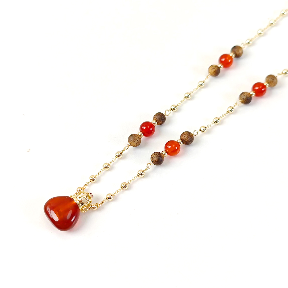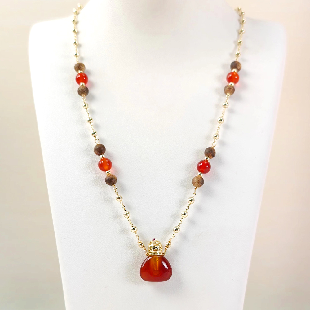 天然红玛瑙福袋款镂空项链+